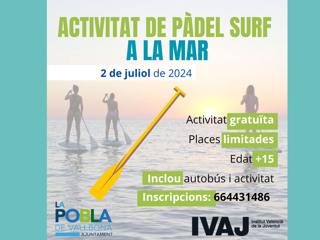 🌞 Fes front a la calor amb l'activitat 'Pàdel surf a la mar' organitzada per la Regidoria de Joventut.