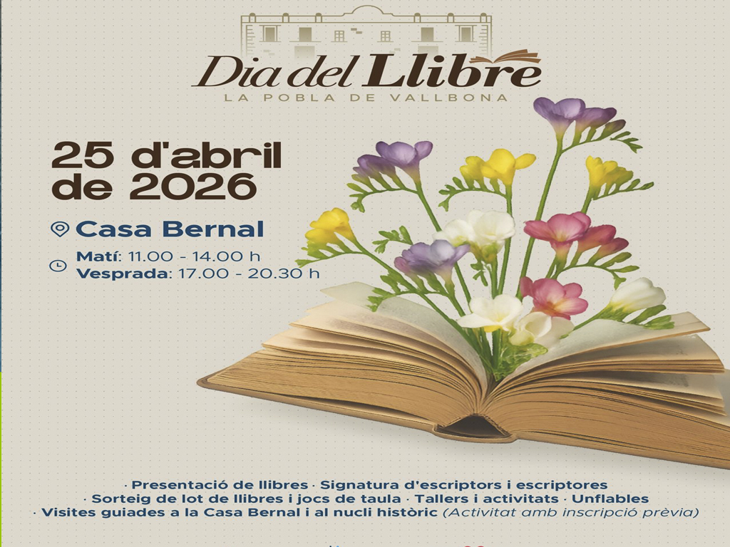 El pròxim 25 d’abril celebrem el Dia del Llibre a la nova biblioteca municipal ubicada a la Casa Bernal.